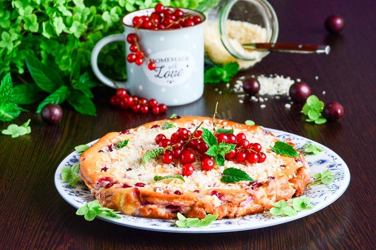 Сверху выложите творожную массу со смородиной, разровняйте поверхность. Выпекайте в заранее (за 10-20 минут до начала приготовления) разогретой до 180 градусов духовке около 45 минут. Как проверить готовность запеканки? Когда сверху образуется румяная корочка, проткните ее в нескольких местах деревянной шпажкой. Если она выходит сухой, значит изделие можно доставать из духового шкафа.