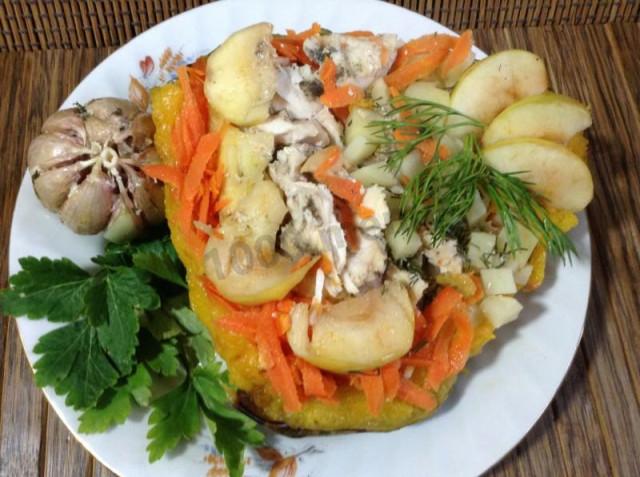Тыква запеченная с курицей и яблоками