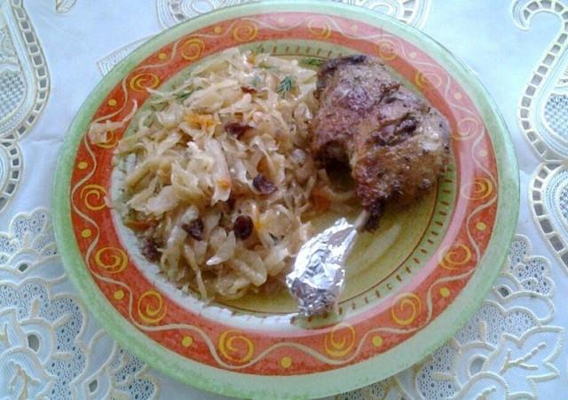 Сочные окорочка с пряным капустным гарниром - вкуусно! Я фанат утки. Рецептов приготовления много. Предлагаю попробовать утиные окорочка с пряным капустным гарниром. Раньше считала, что нельзя смешивать свежую и квашеную капусту, разное время приготрвления. Приготовила и не пожалела. Муж, который капусту тушенную не ест, попросил добавки. Тепепь просит готовить такой гарнир и к другим блюдам.