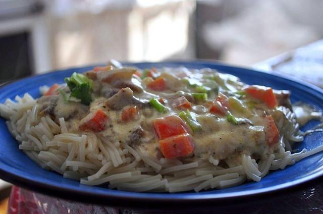 Вермишель с грибной подливкой