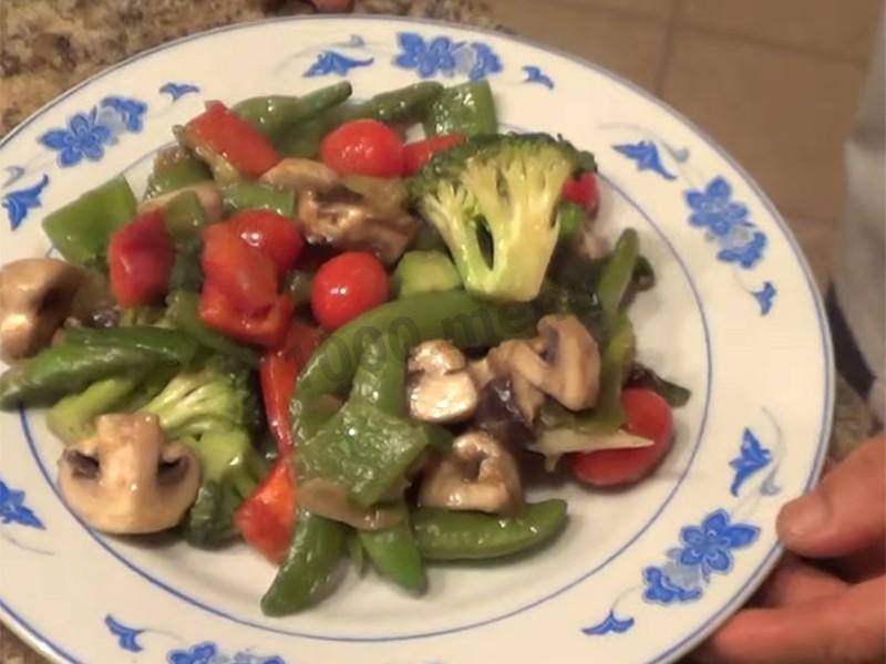 Вок с овощами и грибами
