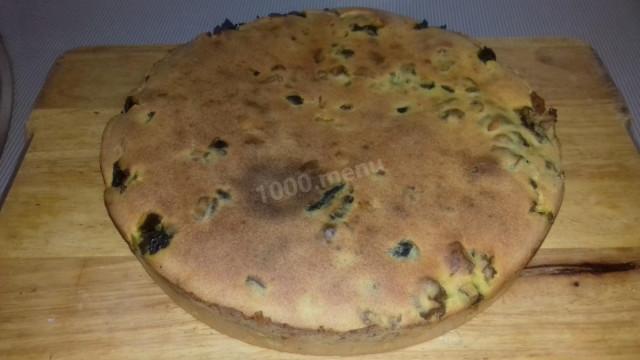 Добавить лук и обжариваем. Соль перец по вкусу. Затем выливаемы часть теста в форму, выкладываем начинку и сверху остатки теста. Печь при 180 the, 30 минут.