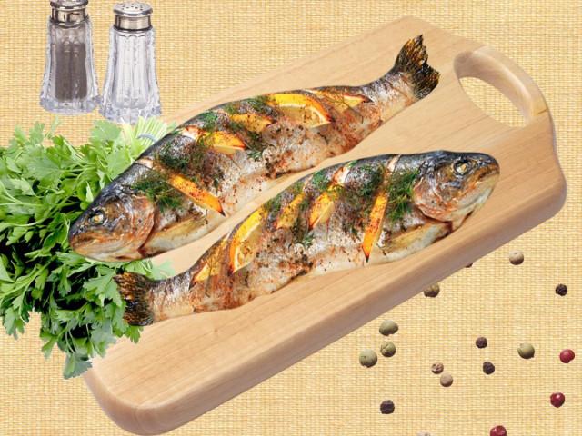 4. Выкладываем форель на блюдо, подаем украсив зеленью и свежими овощами.