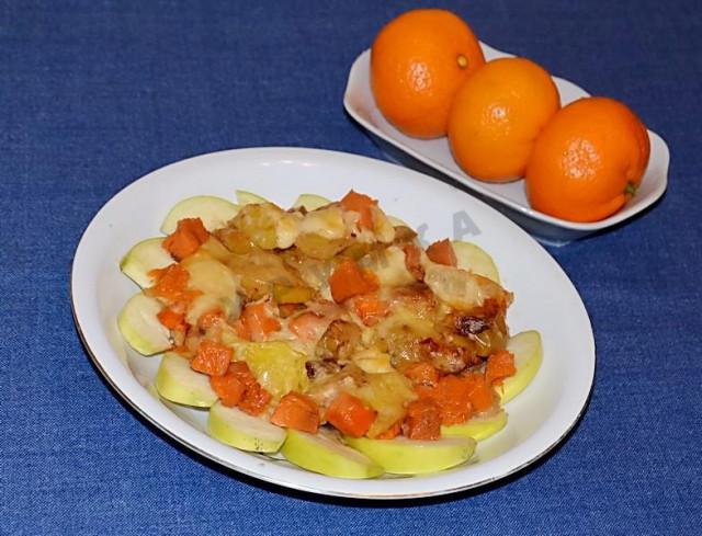 Запечённая тыква с яблоками, апельсинами, сыром и корицей