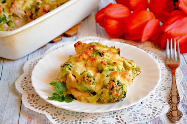 Ставим брокколи с курицей в духовку. Выпекаем 25 минут при температуре 180 градусов до золотистой сырной корочки. Время выпекания может немного меняться, это зависит от Вашей духовки. Можно ориентироваться по цвету сырной корочки, если она золотистая - блюдо готово (так как мы изначально используем уже готовые ингредиенты, сырым и не пропеченным ничего не будет).