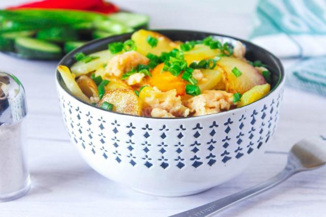 Жареная картошка с фаршем на сковороде