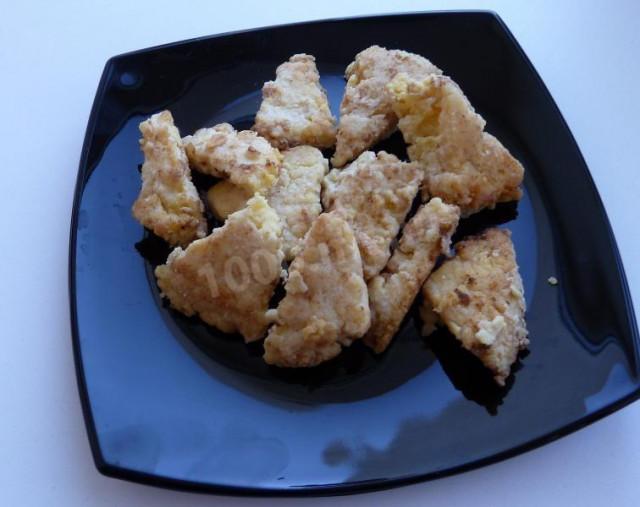 Охлаждённую поленту порежем треугольными, тонкими кусочками.