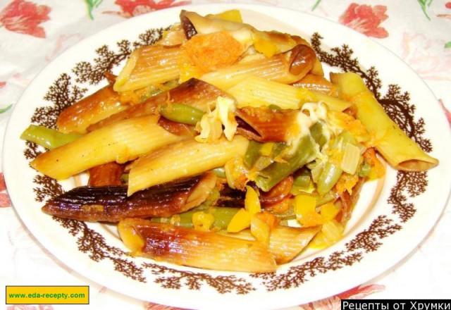 Жареные макароны с овощами