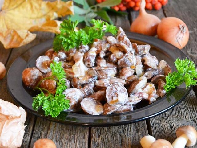 Жареные маслята в сметане