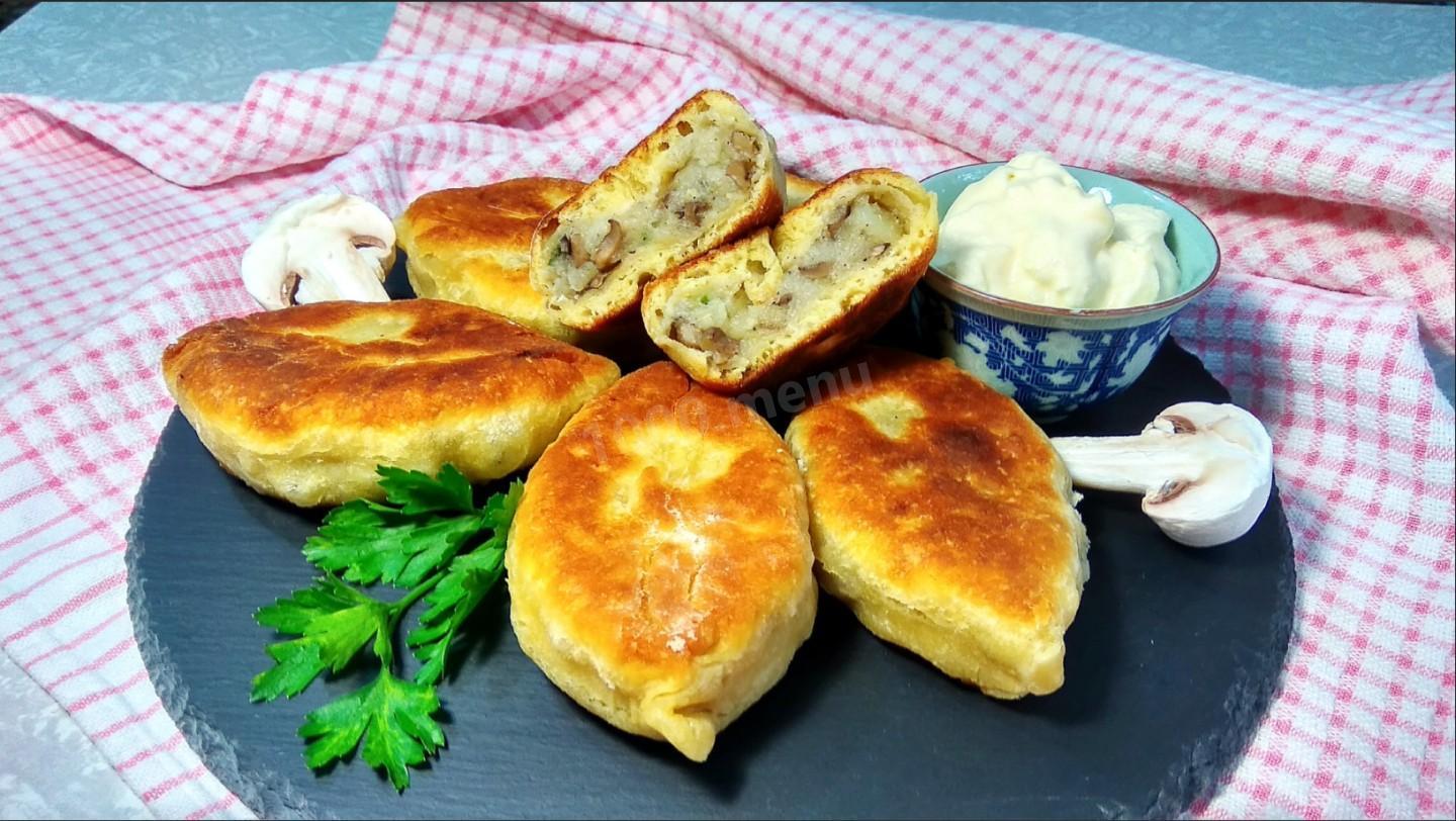 Горячие жареные пирожки с картошкой и грибами подавать к столу со сметаной. Приятного аппетита!