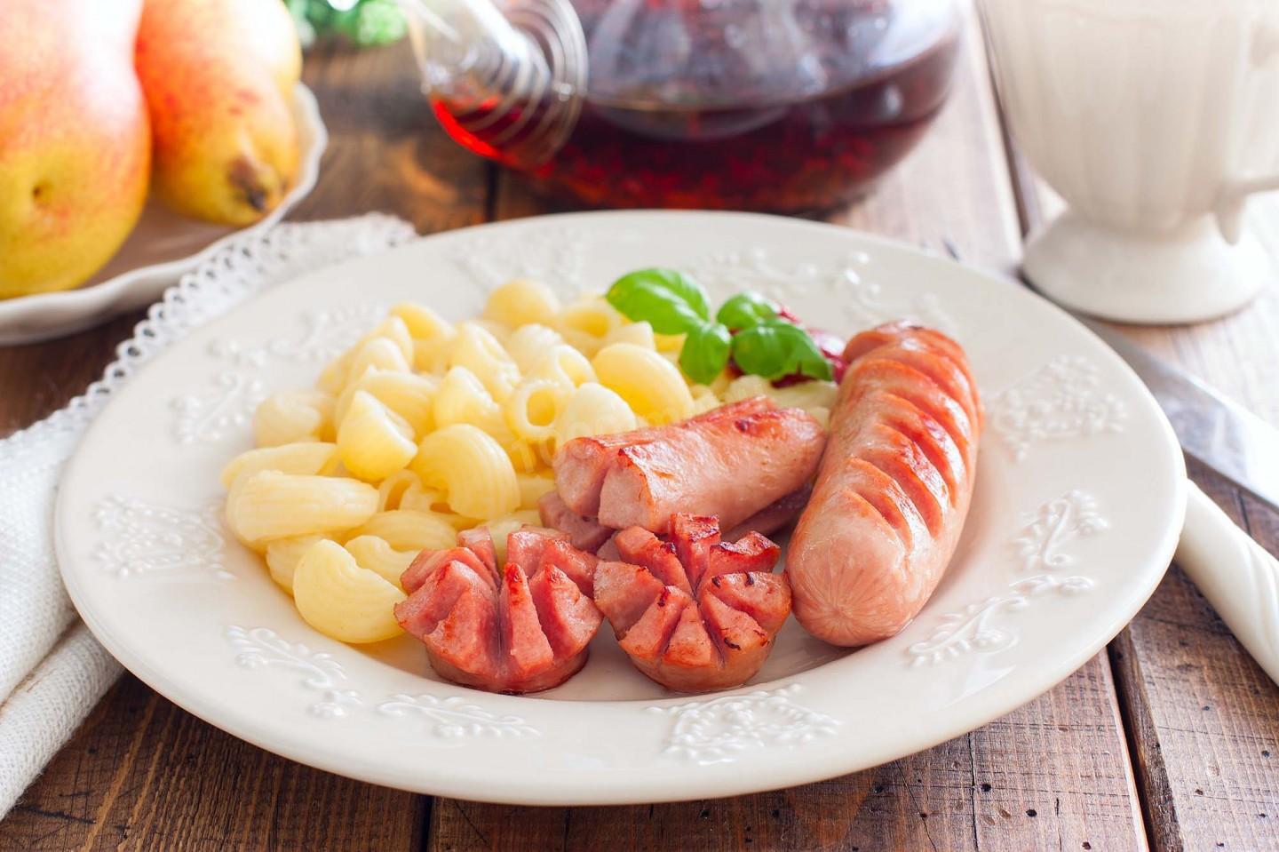 У подготовленных таким образом сосисок для жарки все надрезанные части раскрываются и получается очень интересное оформление готового блюда. Такие сосиски можно подать на завтрак, а можно порадовать детей ужином с такими сосисками и макаронами.