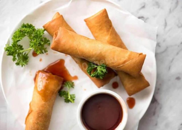 Подаем горячие спринг роллы с соусом и наслаждаемся!