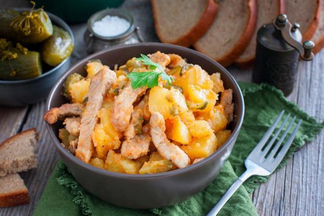 Азу из свинины с картошкой и маринованными огурцами