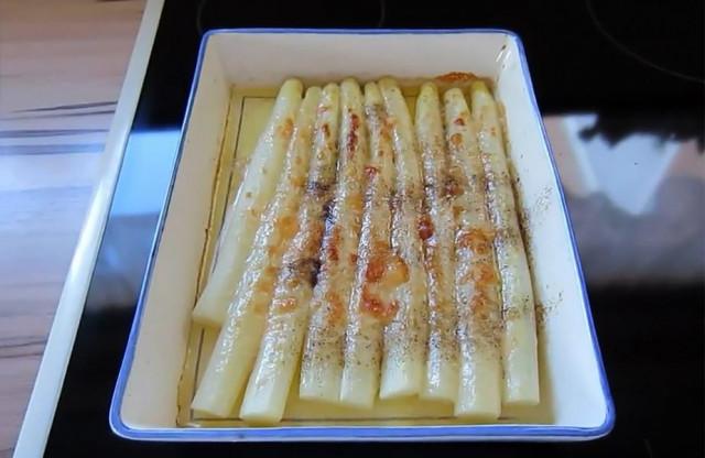 4. Обильно посыпьте спаржу тертым пармезаном и присыпьте молотым перцем.
