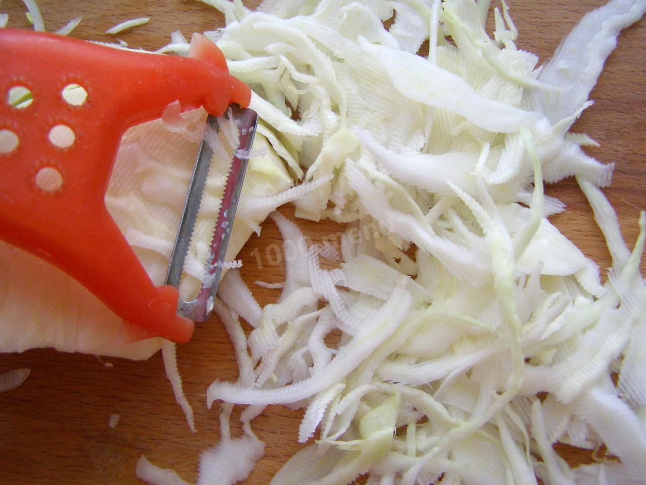 Капусту можно резать не только соломкой, а и небольшими или крупными ломтиками – на ваш вкус.