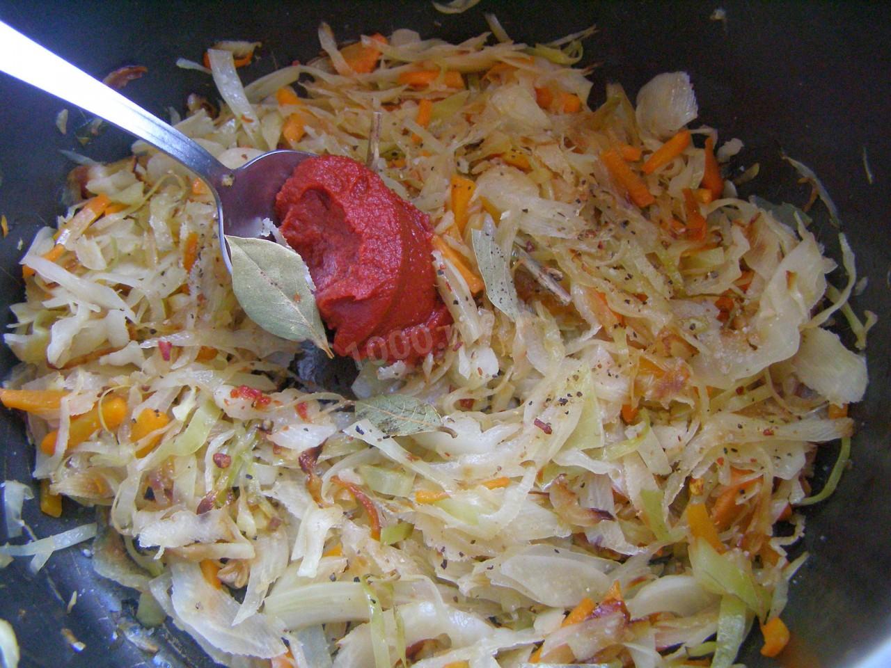 Белокочанная капуста с томатной пастой луком в мультиварке