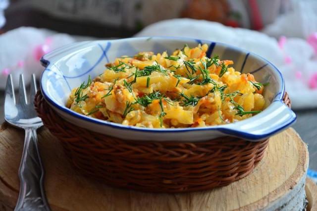 6. К луку добавьте морковь, тушите все вместе пока она не станет мягкой.