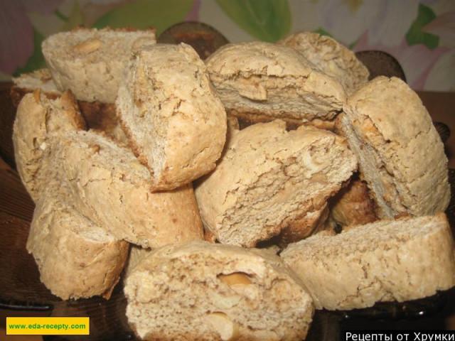 После достаем, даем 5 минут остыть. И нарезаем на такие ломтики толщиной в 1 см. Далее кладем их назад на противень и ставим в духовку минут на 15 - ждем, пока не подсохнут и не подрумянятся.