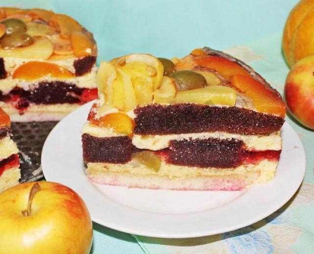 Очень вкусный и красивый в разрезе фруктовый торт! Попробуйте приготовить Бисквитный торт Фруктовый – останетесь довольны вы и ваши гости! Вкусный, сытный торт с разными фруктами и ягодами в желе, и в сочетании с мягким бисквитом. Изюминкой торта является особенность сочетания разных слоев, что делает торт красивым не только сверху, но и в разрезе! Приготовить торт не сложно, просто нужно время и терпение.
