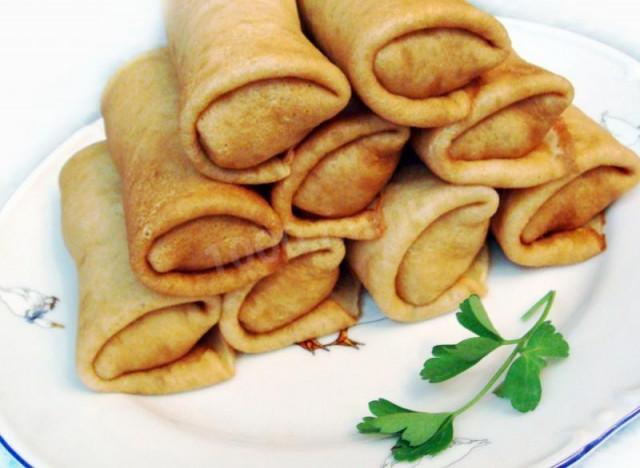 Сначала отвариваем яйца, говядину и рис (по отдельности). Затем печем дрожжевые блины по любому рецепту.