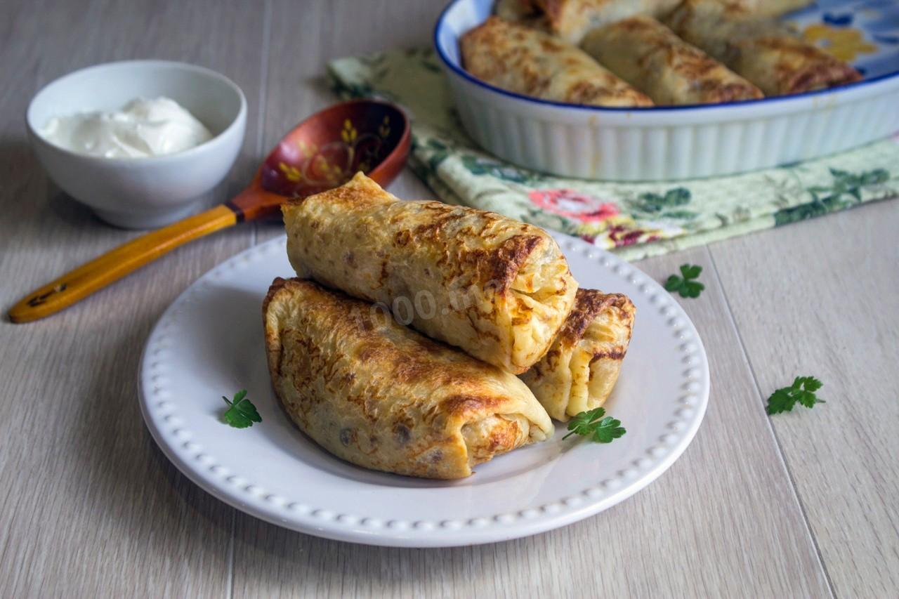 Блины из теста на кипятке с картошкой и грибами в духовке