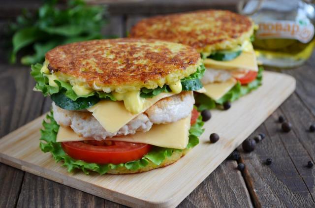 Очень вкусные картофельные булочки с котлетой и овощами!