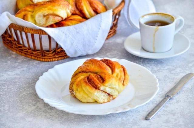 Выпекайте булочки в духовке, разогретой до температуры 180 градусов, около получаса до золотистого цвета. Готовые булочки немного остудите и подавайте к столу. Они вкусны и в теплом виде, и в остывшем. Приятного аппетита!