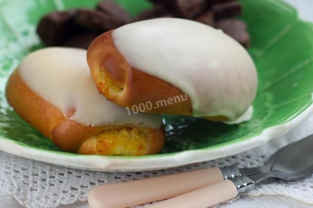 Раскладываем булочки на смазанный маслом лист, и каждую смазываем взбитым яйцом. Даем на расстойку 25 минут. Запекаем при температуре 180 градусов в течение 15-20 минут. Готовые булочки смазываем сливочным маслом или поливаем сахарной помадкой, молочной или белковой глазурью.