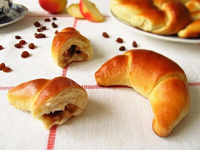Булочки-рогалики из дрожжевого теста с яблоками