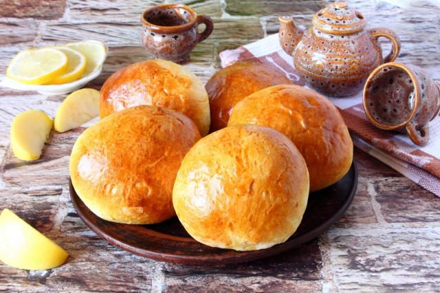Сдобная, румяная, ароматная выпечка с сочной начинкой. По этому рецепту вы испечете мягкие булочки с фруктовой начинкой из яблок. Они получаются в меру сладкими и воздушными. Всего выйдет 5 штук, но, если увеличить пропорции в два раза, то получится 10 булочек. Кушать их лучше свежими!