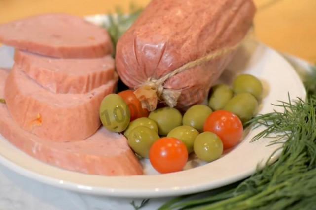 Домашняя докторская колбаса готова - осталось только ее охладить.