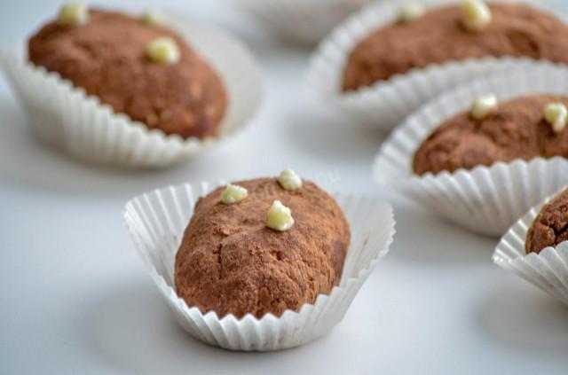 В отдельной миске смешайте вместе: печенье, орехи, какао. Примерно одну столовую ложку какао можете оставить для обсыпки.