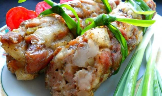Мясо и сало нарезать маленькими кусочками (чем мельче, тем лучше).