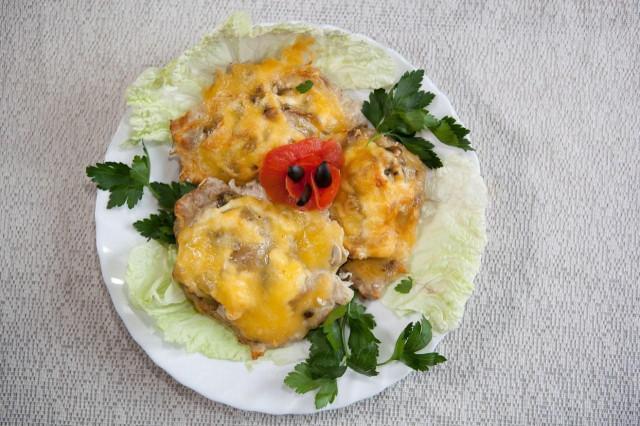 11. Выложите "шубу" сверху на обжаренные куски индейки.