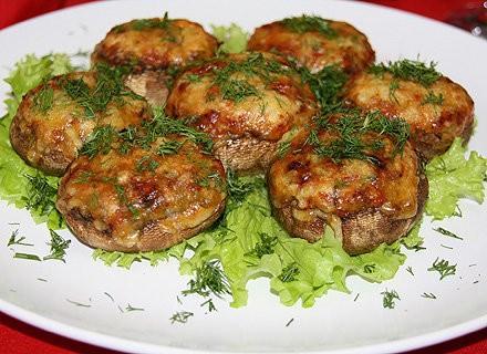 Начиняем шляпки и ставим в разогретую духовку на 180° на 20 мин