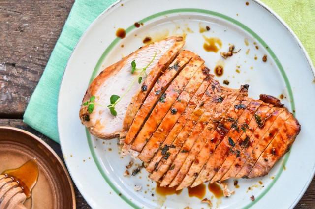 Мед не только придает мясу особенный вкус, но и создает особенную корочку, грудка словно покрывается нежной, аппетитной глазурью. Мед должен быть жидким, если он уже успел загустеть, растапливаем на водяной бане или в микроволновой печи.