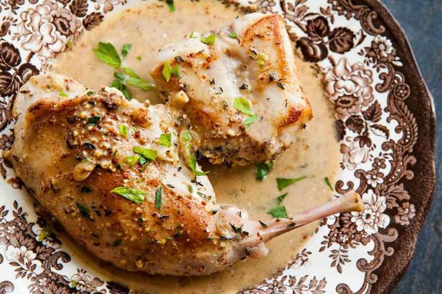 Тушеный кролик в изумительном соусе. Вкусно и торжественно! Фрикасе из кролика в винном соусе – классика французской кухни. Есть множество вариантов его приготовления, но именно тушение позволяет мясу быть столь нежным и мягким.