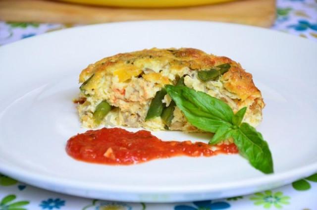 Фриттата со стручковой фасолью помидорами черри и грибами