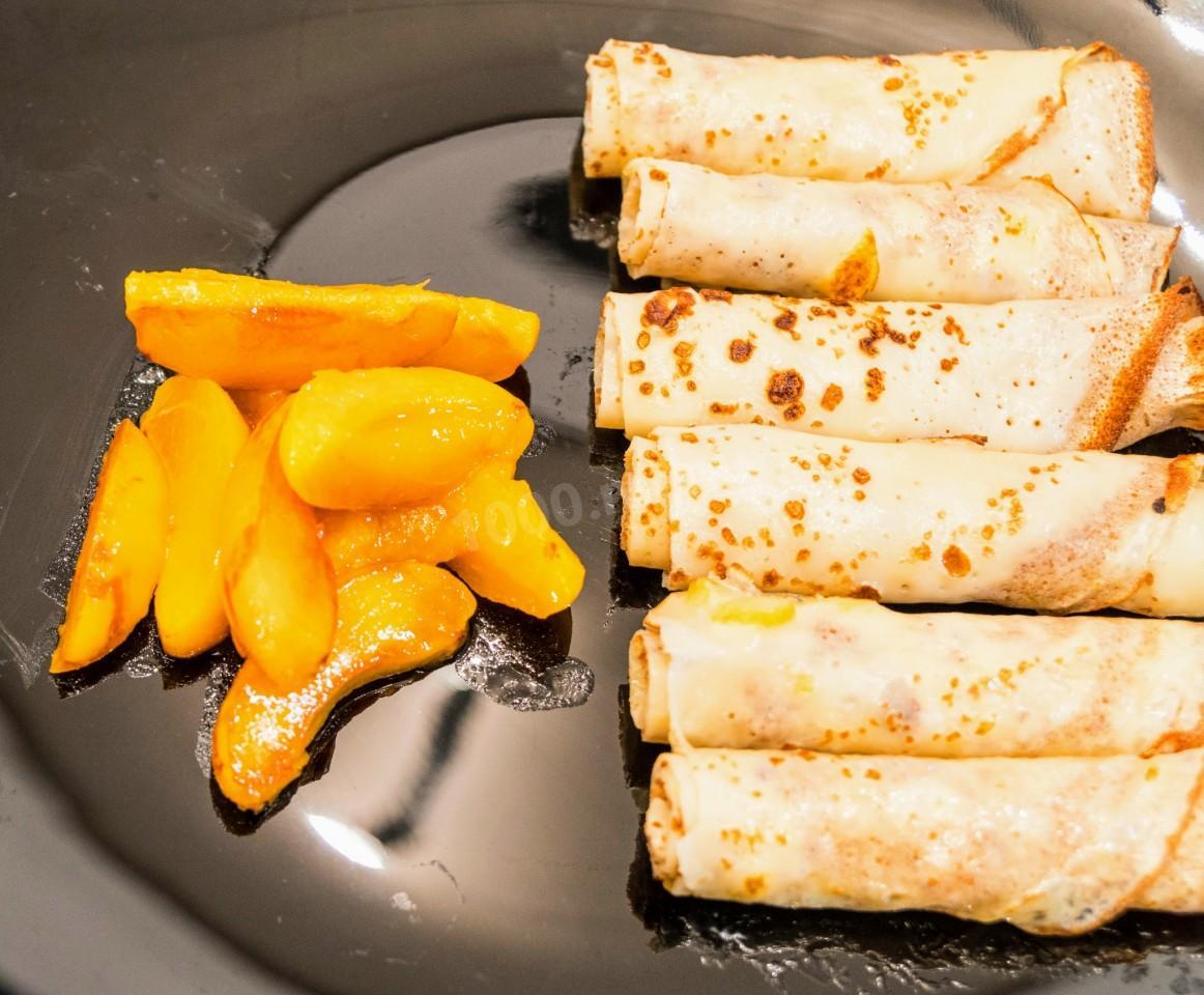 Фруктовые блинчики на молоке с абрикосовой начинкой