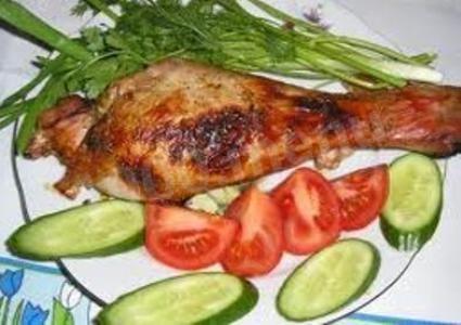 После этого завернутые в фольгу куски индейки ложем на противень и запекаем в духовке при температуре 200С чуть больше 40 минут, бройлеры на 30 минут. Для того чтобы проверить готовность мяса, протыкаем его иглой, и если в это время вытекает прозрачная жидкость то это означает что птица готова. Подаем это мясо с соусом, в котором она запекалась. Можно на гарнир подать отварной рис или картофель и также сделать салат из свежих помидоров. Отдельно подаем сметану. Таким ужином вы несомненно удивите своих близких.