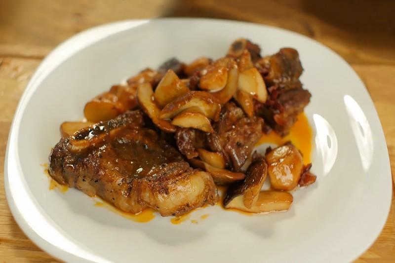 16. На порционные тарелки выложите ребрышки, сверху полейте соусом, положите грибы. Можно также посыпать готовое блюдо свежей зеленью.