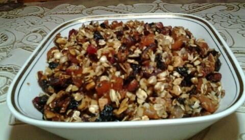 Достать геркулес, дать остыть, добавить сушенные фрукты и ягоды и хорошо перемешать. Переложить в банку с крышкой и использовать для завтраков и десертов. Дети будут очень довольны, да и взрослые не откажутся от такого вкусного и питательного завтрака.