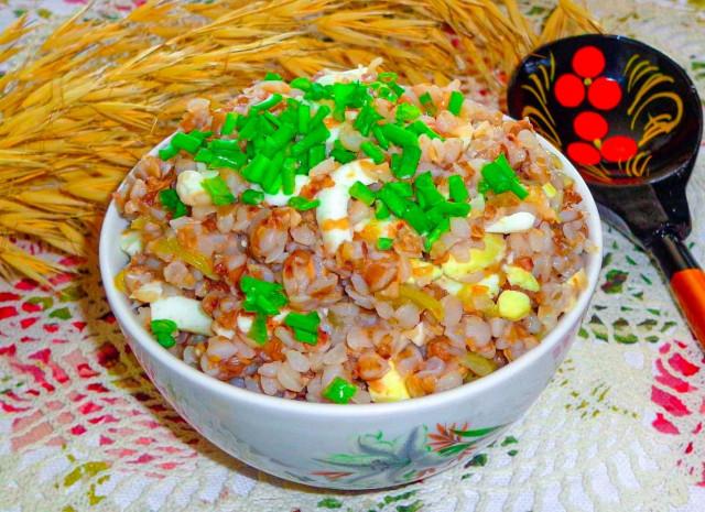 Перемешайте кашу с яйцом и луком. Можете подавать гречку с яйцом к столу. Приятного аппетита!
