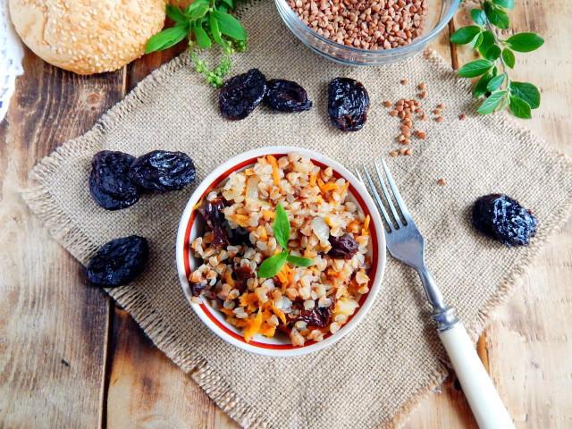 Отличный гарнир к мясу, курице или рыбе! Разных рецептов гречневой каши с черносливом существует не мало. Готовят гречневую кашу с пассерованными овощами и черносливом в качестве гарнира к мясным блюдам, на молоке с черносливом сладкую, с овощами и черносливом, с фруктами и черносливом и другие блюда. Остановимся на первом варианте гречневой каши, такие добавки как обжаренные на масле репчатый лук и морковь, а также чернослив делают это блюдо особенно вкусным и ароматным. Его можно подать к столу не только как гарнир, но и как самостоятельное блюдо, например, в период поста.