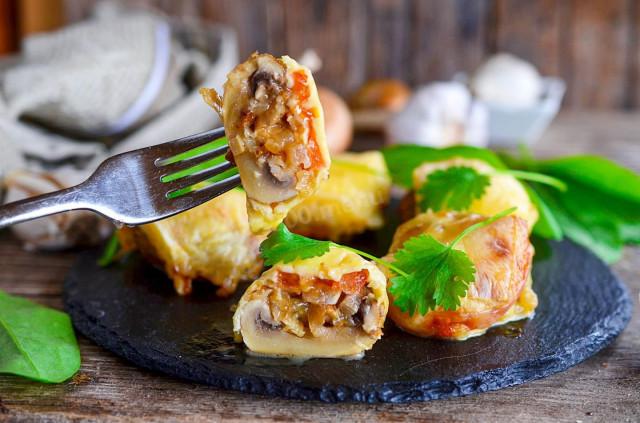 Нафаршируйте грибные шляпки приготовленной начинкой.