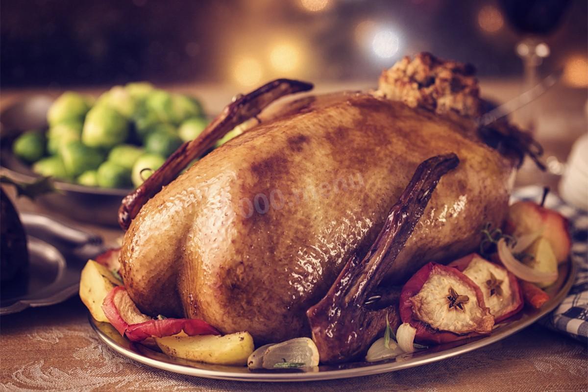 Готовьте гуся при 200 градусах в течение 2 часов. Перед подачей извлеките фрукты из брюшка и нарежьте мясо порционными кусочками.