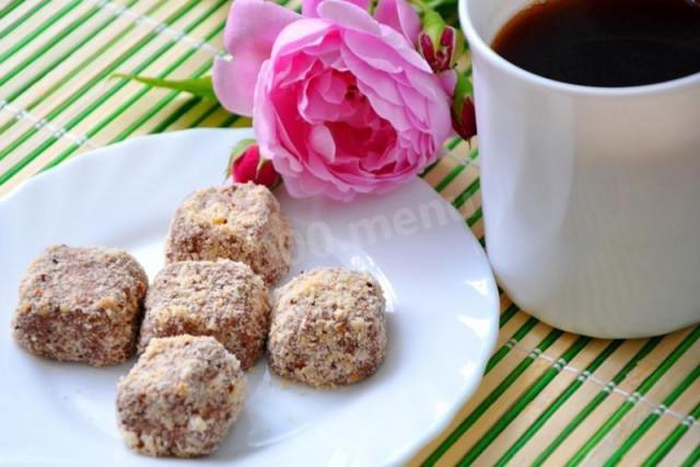 Теперь в готовый сироп добавляем просеянное сухое молоко небольшими порциями и все тщательно смешиваем с помощью миксера или вручную. Следите, чтобы не было комочков. По желанию можно добавить любые измельченные и слегка обжаренные орехи.