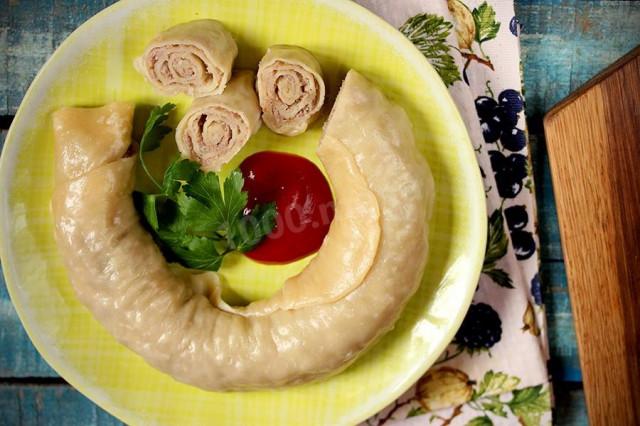 Вкусное и аппетитное блюдо с восточным колоритом. Готовь! Ханум - коронное блюдо моей свекрови, она частенько угощает нас таким рулетом, изобретая все новые и новые начинки. Решила и я попробовать приготовить такое блюдо, только начинку взяла несложную - домашний мясной фарш. Муж очень удивился, когда увидел на столе знакомое блюдо, а потом долго расхваливал мое мастерство. Делюсь рецептом :)