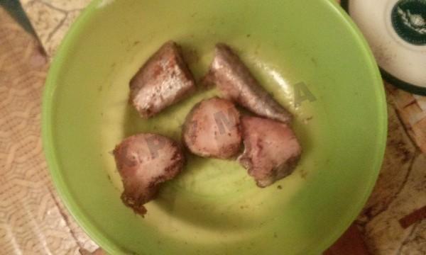 Рыбку режем на небольшие куски, добавляем специи и соль.