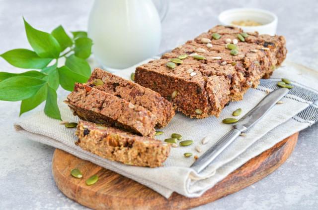 Как сделать хлеб из зеленой гречки без дрожжей? Подготовьте продукты для него. Зеленая гречка - это гречка, которая не подверглась производственной обжарке, благодаря чему в ней сохранены все полезные вещества крупы. Именно поэтому она зеленого цвета. Вместо семян чиа можно взять перемолотые семена льна. Кроме основного состава в хлеб можете положить любые орехи, семена и сухофрукты. У меня это семена подсолнечника, тыквы и изюм.